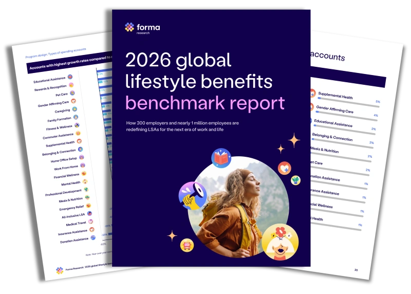 Get the most trusted global lifestyle benefits insights with Forma's 2026 benchmark report. Design your programs with confidence using research on Lifestyle Spending Account (LSA) design, funding, and employee spending.